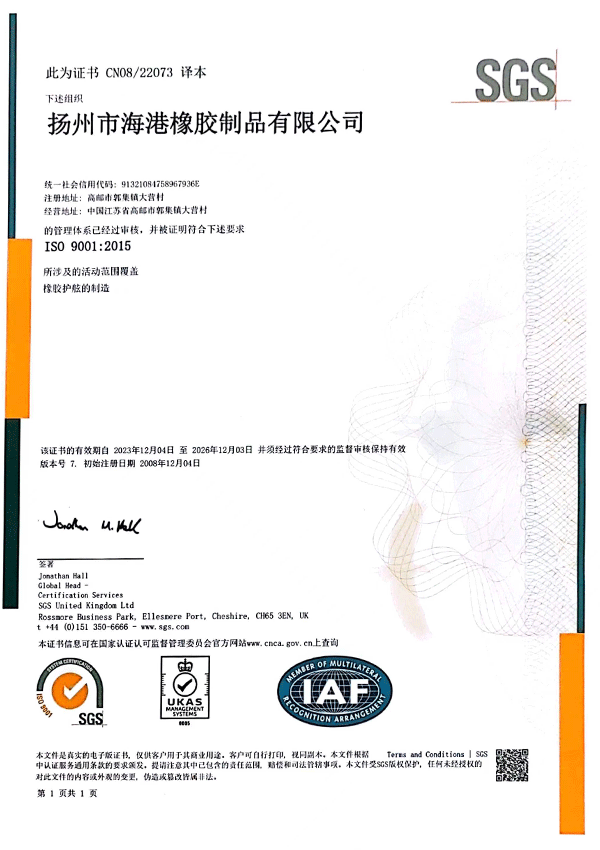 凡在海港橡膠購買的產(chǎn)品享受提供的終身維護服務(wù)。